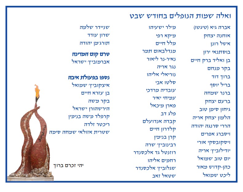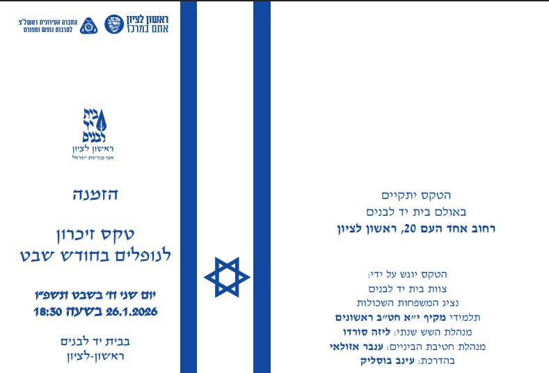 החודש ייערך טכס ההנצחה ביום שני ח' בשבט תשפ"ו (26.01.26) בשעה 18:30.