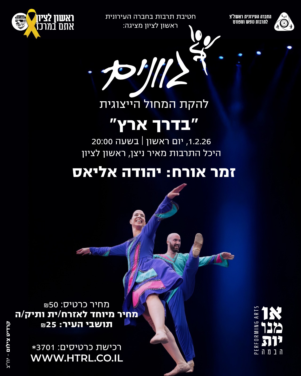 חטיבת תרבות, בחברה העירונית גאה להציג את להקת המחול "גוונים"💃במופע חגיגי "בדרך ארץ", בהשתתפות הזמר יהודה אליאס.