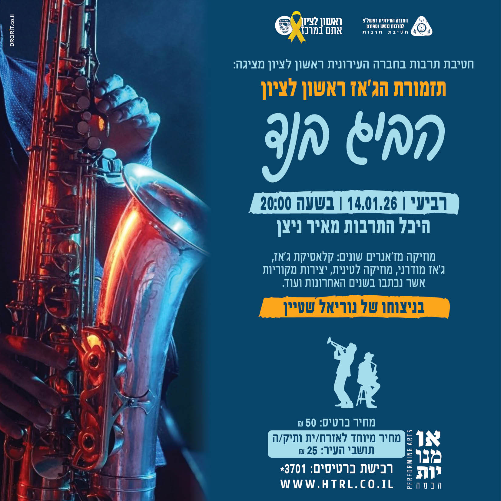 חטיבת תרבות החברה העירונית ראשון לציון מזמינה אתכם לערב בלתי נשכח עם הביג בנד – תזמורת הג'אז המובילה של העיר, בניצוחו המרהיב של נוריאל שטיין!