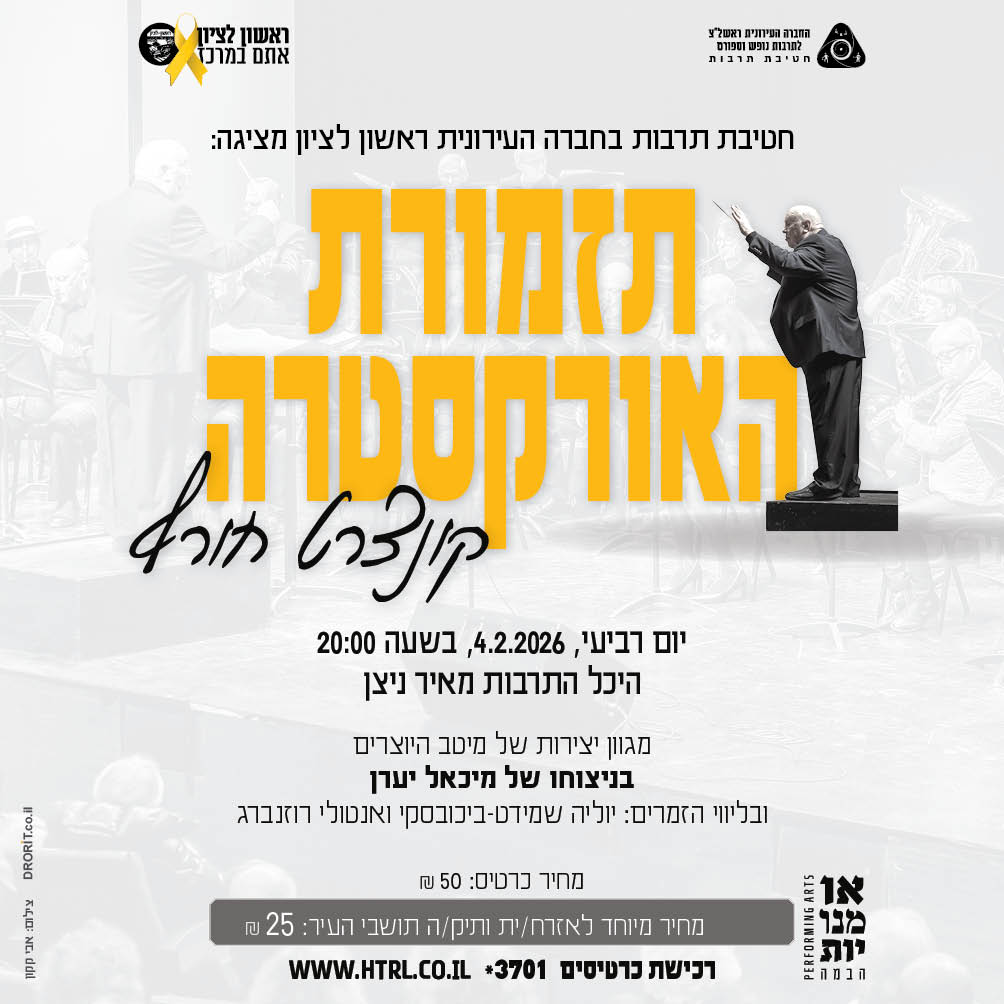 יום רביעי, 14.01 | 20:00 | אודיטוריום היכל התרבות ראשון לציון