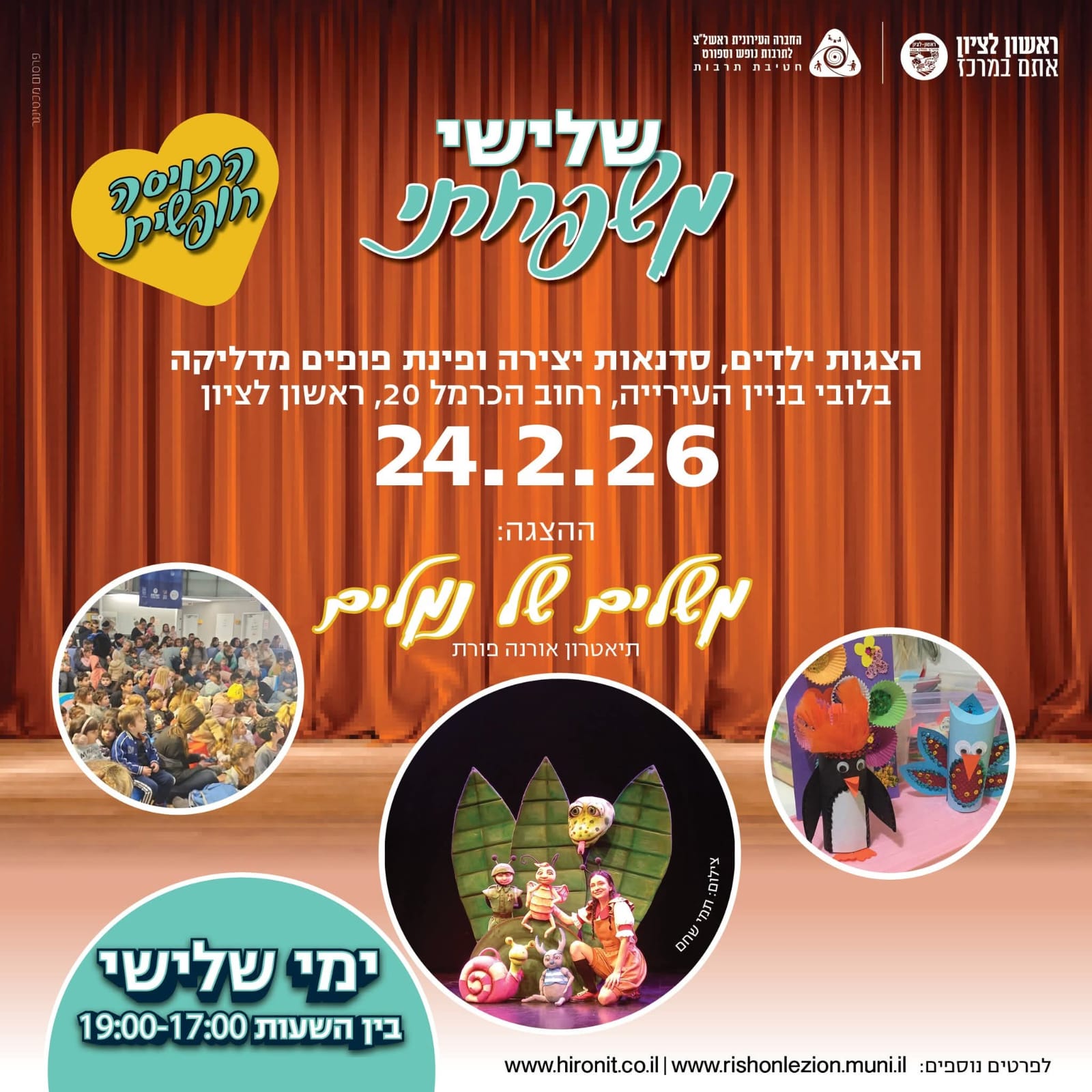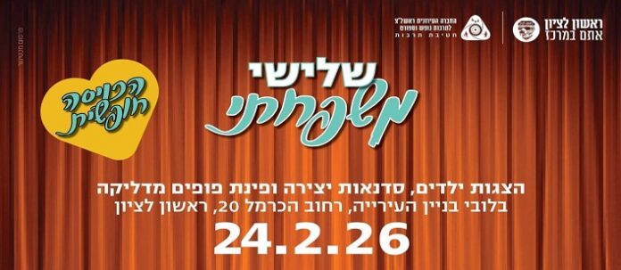 חטיבת התרבות בחברה העירונית של עיריית ראשון לציון מציגה: שלישי משפחתי!
